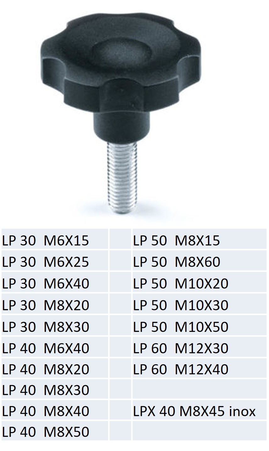 1) Από την περιγραφή του τύπου, προκύπτουν κι οι διαστάσεις π.χ. Το VP 20 M4X25 έχει διάμετρο χειρολαβής 20mm, διάμετρος σπειρώματος Μ4 και μήκος σπειρώματος 25mm