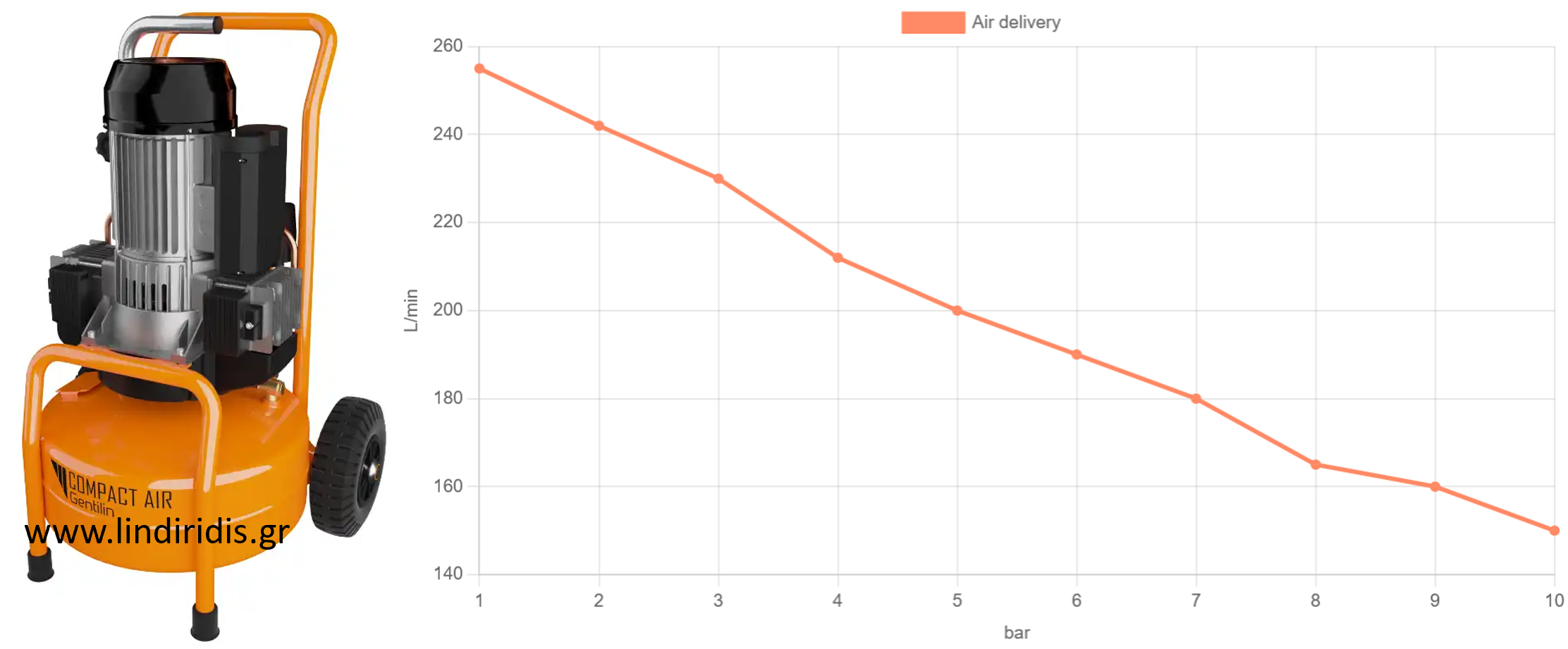 • Παραγωγή αέρα στα 5bar: 200 lt/min