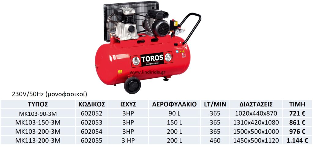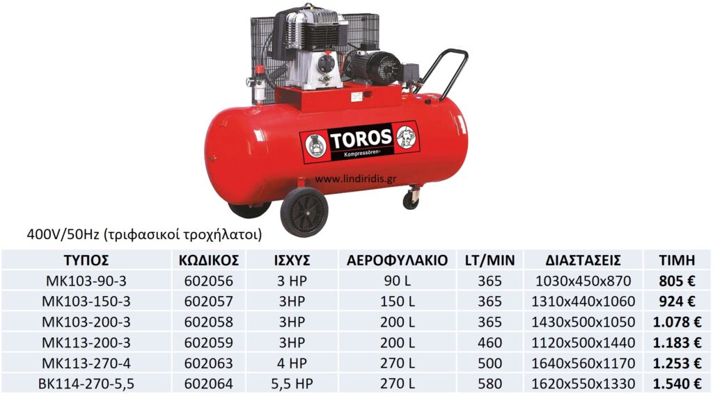 Ο αεροσυμπιεστής TOROS είναι ο πιο γνωστός κι εμπορεύσιμος εμβολοφόρος στην ελληνική αγορά, εδώ και 40 χρόνια.