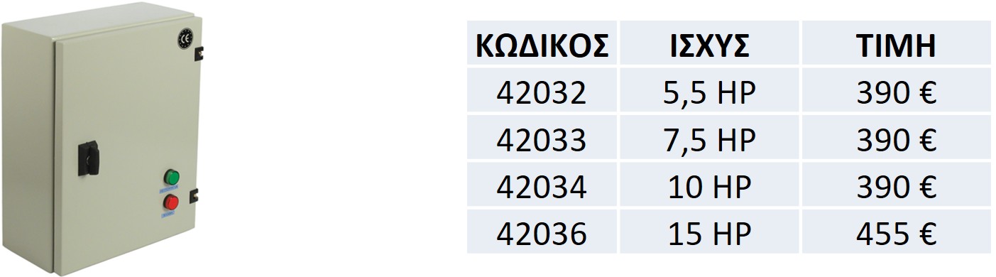 Οι τύποι Υ/Δ συνοδεύονται με ηλεκτρικό πίνακα διαδοχικής εκκίνησης αστέρος-τριγώνου και ηλεκτροβαλβίδες.