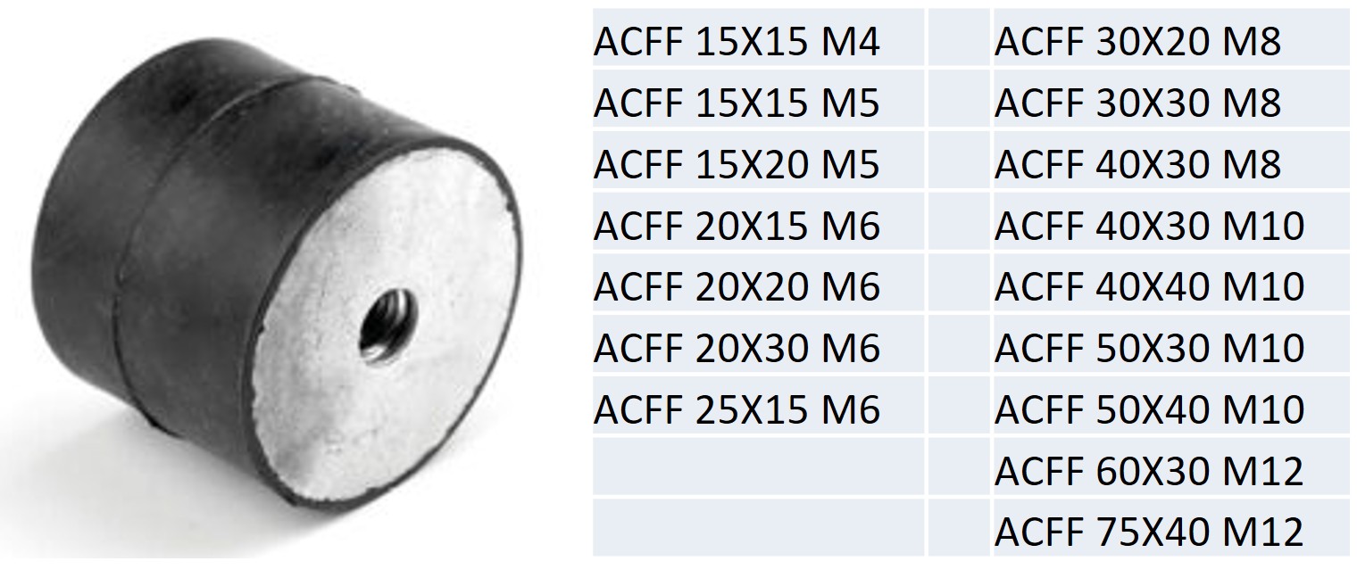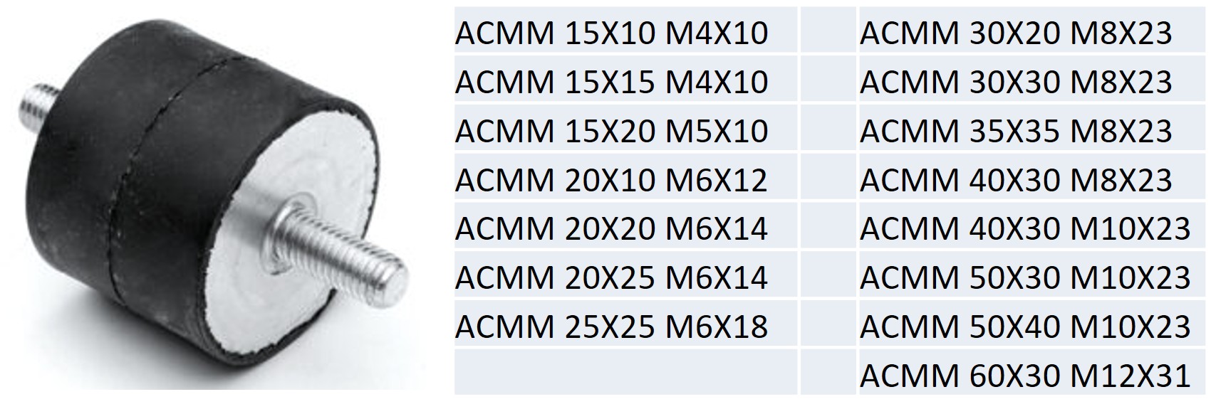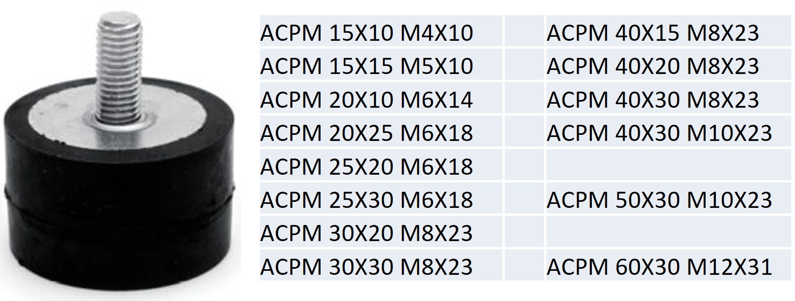 1) Από την περιγραφή του τύπου, προκύπτουν κι οι διαστάσεις π.χ. Το ACPM 20X10 M6X14 έχει στο λάστιχο 20mm διάμετρο με 10mm πάχος (ύψος) και στην βίδα σπείρωμα Μ6 με μήκος 14mm.